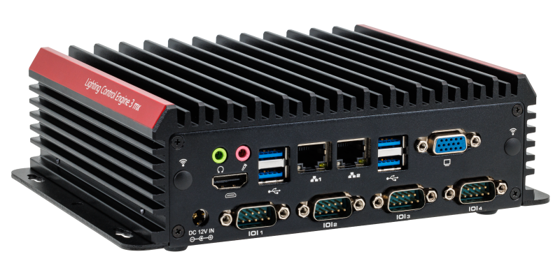 Designed to control small to medium projects, the Lighting Control Engine 3 mx (LCE3MX) is a high performance server with two e:cue software applications installed. As a central control unit, this versatile lighting control server orchestrates all devices and fixtures within a project. With the ability to output e:net and the capability to integrate various external engines, triggers, and other desired devices and content, the LCE3MX is an ultimate solution for demanding projects: from automation to DALI projects up to medium architectural illumination. The LCE3MX can be mounted on DIN rails with the optional DIN rail adapter brackets, on walls, and in 19 inch racks mounted on a rack drawer.