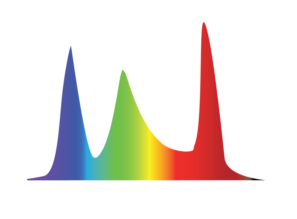 Instead of the traditional three wavelength peaks for RGB, SYMPHONY produces a broad spectrum with a flatter, even distribution of the visible wavelengths.
