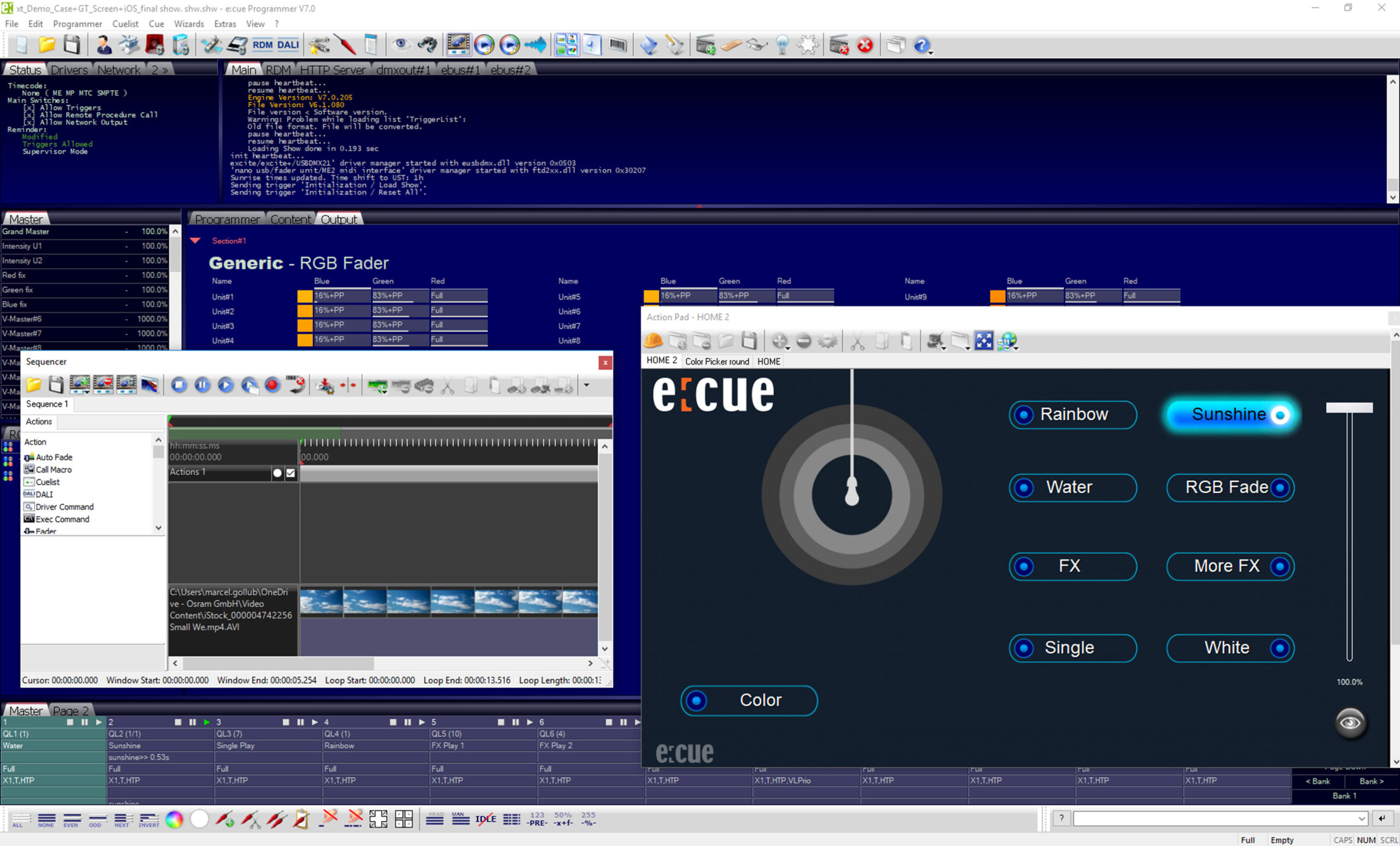 灯光应用套件包括创新和直观的工具,用于设计从简单到复杂的灯光和视频节目,在项目计划中定位灯光装置,以及在控制系统中配置e:cue 和外部设备。此外,您还可以编程特殊的灯光效果、视频到灯光的pixel 映射、灯光安装的可视化以及特殊的触发和自动化功能。